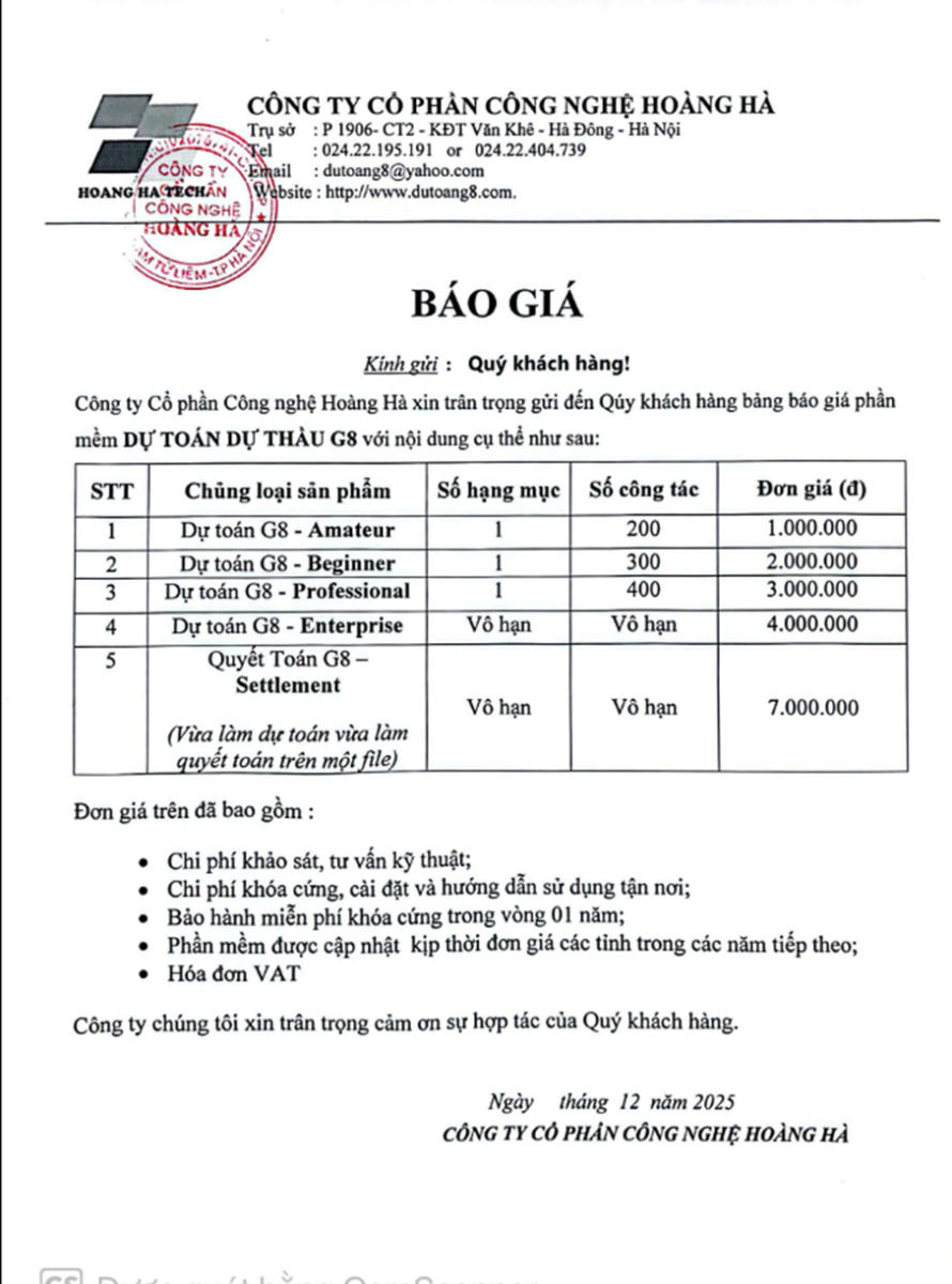 Có 2 cách mua Khóa phần mềm Dự toán G8:
